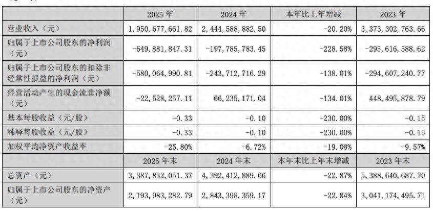 2025年公司加权平均净资产收益率为-25.80%,较上年的-6.72%大幅下滑19.08个百分点。
